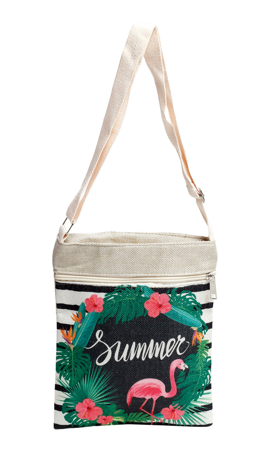 Flamingo Paradise beach pouch bag is designed to withstand the rigors of beachside adventures. Its spacious interior provides ample room for all your essentials, from sunscreen and sunglasses to your favorite beach read and a refreshing drink.